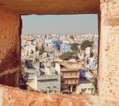 Jodhpur, India: Przegląd Blue City od Twierdza Mehrangarh