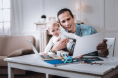 Zdjęcie "Pozytywne cute chłopiec przytulanie ojca" może być wykorzystywane do celów osobistych i komercyjnych zgodnie z warunkami zakupionej licencji Royalty-free. Obraz jest dostępny do pobrania w jakości wysokiej rozdzielczości do 5760x3840.