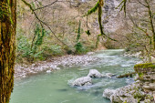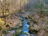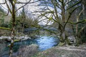 Most i Omszałych drzew w pobliżu wodospad saut du doubs