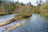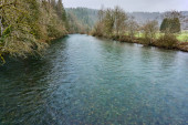 Omszałych drzew na rzeką doubs w pobliżu wodospad saut du doubs