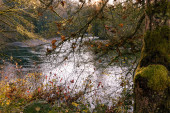 Omszałych drzew na rzeką doubs w pobliżu wodospad saut du doubs