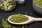 Zdjęcie "Mung bean w drewniane miski. Pojęcie jedzenie zdrowe i korzystne." może być wykorzystywane do celów osobistych i komercyjnych zgodnie z warunkami zakupionej licencji Royalty-free. Obraz jest dostępny do pobrania w jakości wysokiej rozdzielczości do 5760x3840.