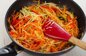 Sałatka z świeżo startą marchew, buraki, cebulę, zielonych i kapusta z bliska strzał.