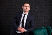 Zdjęcie "Przystojny mężczyzna w czarnym rękawów posiada dar w jej ręce, otwiera prezent, obecny" może być wykorzystywane do celów osobistych i komercyjnych zgodnie z warunkami zakupionej licencji Royalty-free. Obraz jest dostępny do pobrania w jakości wysokiej rozdzielczości do 5760x3840.