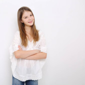 Europejska kaukaski teen girl pozuje na kamerę jako model