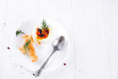 Barszcz - barszcz w misce biały na tle drewnianych, tradycyjne danie kuchni ukraińskiej. Widok z góry.