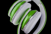 zielonej słuchawki na białym tle na czarnym tle