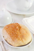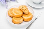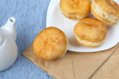 Brazylijski przekąska ser chleb na białym talerzu
