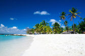 Letnich. Egzotyczne wakacje. Palmy. Turkusowe wody. Słoneczny błękitne niebo. Piękna piaszczysta plaża. Kciuk windę.
