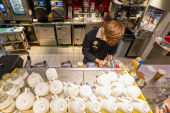 Korea Południowa, Busan – 28 maja 2017: Personel w nowoczesnej kuchni otwarte miejsce włoskie bistro hotelu Lotte Department Store