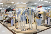 Korea Południowa, Busan, - 28 maja 2017: wewnątrz Uniqlo sklepie towarowym Lotte, dzień japoński projektant, producent i sprzedawca detaliczny