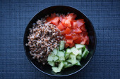 Świeży obiad Sałatka z warzywami i bulgur.