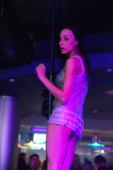 Rosja, Syktyvkar - 06 grudnia 2008: Tancerka słup w "9000 metrov" klub nocny
