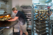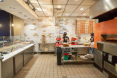 Korea Południowa, Busan – 28 maja 2017: Personel w nowoczesnej kuchni otwarte miejsce włoskie bistro hotelu Lotte Department Store