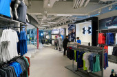 Rosja, Sankt Petersburg - około października 2017: Wewnątrz Nike Factory Store w Sankt Petersburg