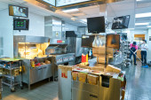 Korea Południowa, Busan – 28 maja 2017: Personel w nowoczesnej kuchni otwarte miejsce włoskie bistro hotelu Lotte Department Store