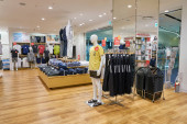Rosja, Sankt Petersburg - Circa sierpnia 2017: Adidas wewnątrz sklepu w centrum handlowym Galeria