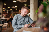 Zdjęcie "młody mężczyzna barista, patrząc na zegarek i siedzi przy stole z laptopa w kawiarni" może być wykorzystywane do celów osobistych i komercyjnych zgodnie z warunkami zakupionej licencji Royalty-free. Obraz jest dostępny do pobrania w jakości wysokiej rozdzielczości do 5760x3840.