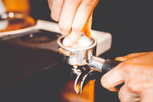 przycięty Zrzut z african american barista w fartuch parzenia kawy w kawiarni