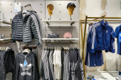 Rosja, Sankt Petersburg - Circa sierpnia 2017: Adidas wewnątrz sklepu w centrum handlowym Galeria