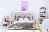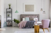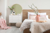 Zdjęcie "Kobieca sypialnia z białymi ścianami" może być wykorzystywane do celów osobistych i komercyjnych zgodnie z warunkami zakupionej licencji Royalty-free. Obraz jest dostępny do pobrania w jakości wysokiej rozdzielczości do 5760x3840.