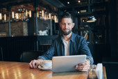 Zdjęcie "widok boczny przystojny Brodaty mężczyzna młody za pomocą laptopa z pusty ekran w kawiarni" może być wykorzystywane do celów osobistych i komercyjnych zgodnie z warunkami zakupionej licencji Royalty-free. Obraz jest dostępny do pobrania w jakości wysokiej rozdzielczości do 5760x3840.