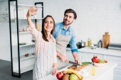 uśmiechający się kilka wegan picie świeżego soku w kuchni i szukasz drogi