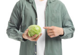 częściowy widok człowieka ze świeżej kapusty w ręce, wegańskie lifestyle concept