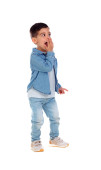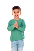 uśmiechnięty chłopczyk klaskanie ręce na białym tle na białym tle, pełnej długości