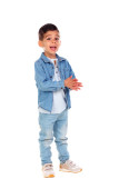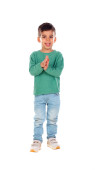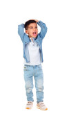 ładny zabawny chłopak z rękami skrzyżowanymi na białym tle