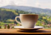 Widok światła dziennego do filiżanki kawy na stole z zielonej góry