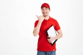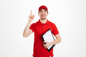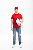 Pełna długość Portret w kolorze czerwonym t-shirt w przypadku kaukaski i