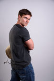 Sexy kowboj przygotowuje się do spełnienia jego Pani.