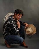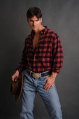 Sexy kowboj przygotowuje się do spełnienia jego Pani.
