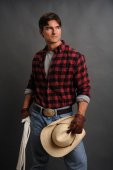 Zdjęcie "Sexy kowboj przygotowuje się do spełnienia jego Pani." może być wykorzystywane do celów osobistych i komercyjnych zgodnie z warunkami zakupionej licencji Royalty-free. Obraz jest dostępny do pobrania w jakości wysokiej rozdzielczości do 5760x3840.