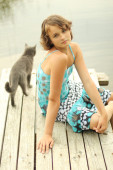 piękna dziewczynka emocjonalność w sukni pływa w wodzie