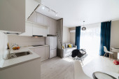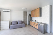Zdjęcie "Studio mieszkanie z małej kuchni" może być wykorzystywane do celów osobistych i komercyjnych zgodnie z warunkami zakupionej licencji Royalty-free. Obraz jest dostępny do pobrania w jakości wysokiej rozdzielczości do 5760x3840.