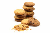 Ciasteczka czekoladowe na białym tle. Słodkie herbatniki.