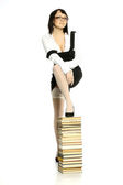 atrakcyjny dziewczynka ubrana w pończochach erotyczne, opierając się na stos książek