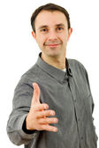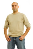 młody szczęśliwy przypadkowy mężczyzna portret, odizolowany na białym