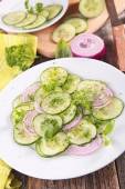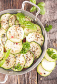 plastry cukinii z śmietaną i bazylia na biały talerz, z bliska