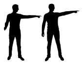 Sylwetka wektor z działalności człowieka, śmiejąc się i pokazując palcem na kogoś