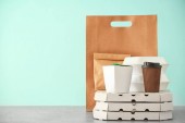 Asortyment żywności dostawa pojemników na biały stół