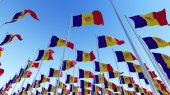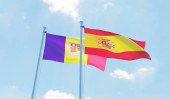 Wiele flagi Andora macha na wietrze przeciw błękitne niebo. Trójwymiarowy renderowania 3d ilustracja.