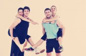 trening fitness szczęśliwa para młoda i zabawy w sport club siłownia
