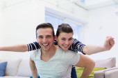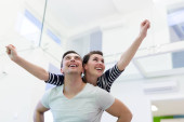 trening fitness szczęśliwa para młoda i zabawy w sport club siłownia