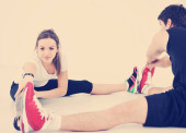 szczęśliwych młodych ludzi w ćwiczenia i zrelaksować się w klubie fitness