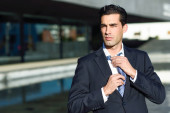 portret młodzieńca przystojny, model mody, peruka w wielkomiejskim