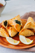 Zdjęcie "Arabski i Bliskiego Wschodu żywności koncepcji. Fatayer sabanekh - tradycyjnych" może być wykorzystywane do celów osobistych i komercyjnych zgodnie z warunkami zakupionej licencji Royalty-free. Obraz jest dostępny do pobrania w jakości wysokiej rozdzielczości do 5760x3840.