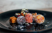 Czekoladowe naleśniki z cynamonem i anyżu na białym talerzu